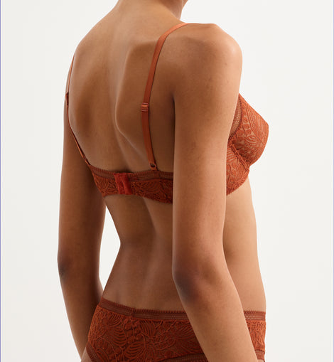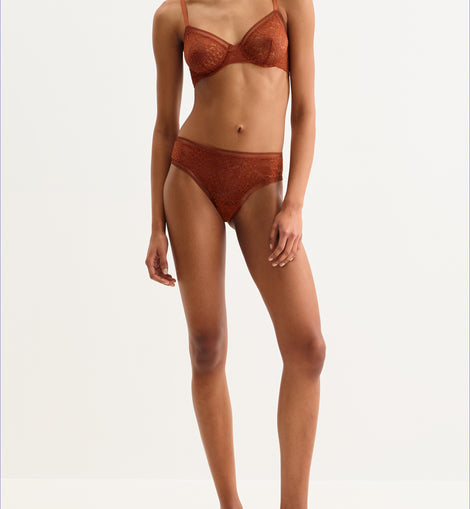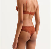 The Acidulée tanga briefs feature matching lace trim at the waist and thighs for extra sophistication.