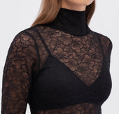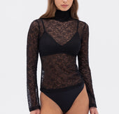 Sweet and sexy in equal measure, the Marie Mock Neck Long Sleeve Top takes lingerie as outerwear to new realms. Crafted from a soft, stretchy organic cotton blend, the semi-sheer floral lace mock turtleneck top layers beautifully with the Marie collection’s soft bras or can be worn all on its own for an unapologetically sultry effect.