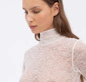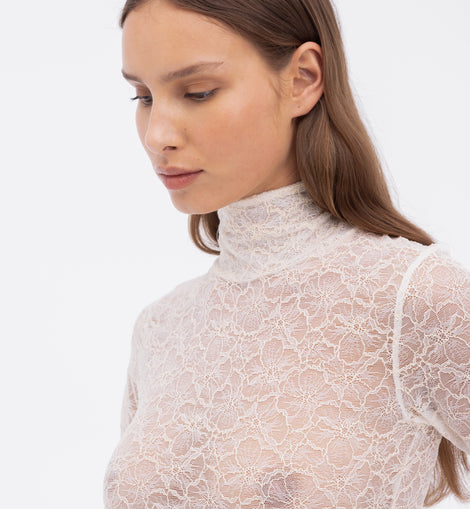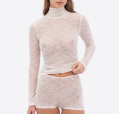 Sweet and sexy in equal measure, the Marie Mock Neck Long Sleeve Top takes lingerie as outerwear to new realms. Crafted from a soft, stretchy organic cotton blend, the semi-sheer floral lace mock turtleneck top layers beautifully with the Marie collection’s soft bras or can be worn all on its own for an unapologetically sultry effect.