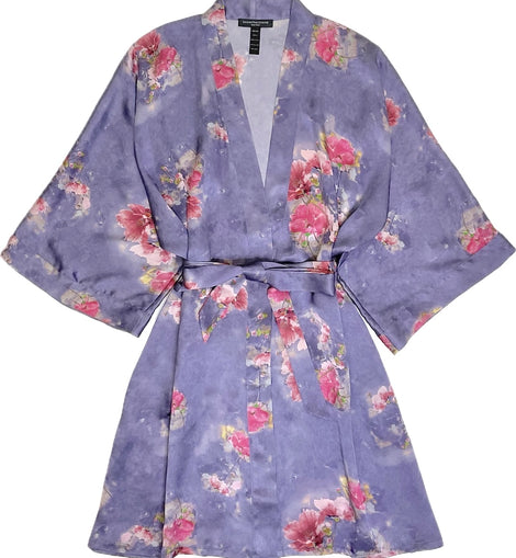The kimono style robe is elegant, feminine and sensual. The heavy weight silk charmeuse has a soft touch and luxurious feel to the bare skin. It can be worn worn all year round.
