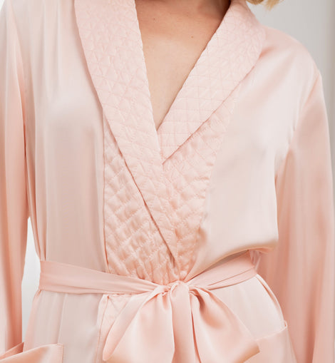 Hollywood Quilted Shawl Collar Robe - Cherry Blossom